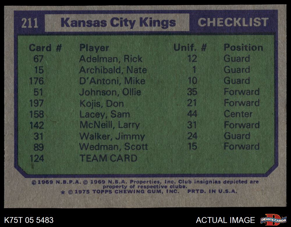 1975 Topps #211 Kansas City Kings 7 - NM