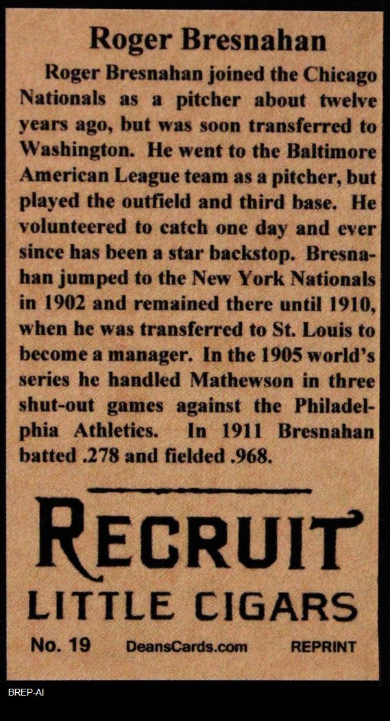 1912 T207 Reprint Roger Bresnahan 8 - NM/MT