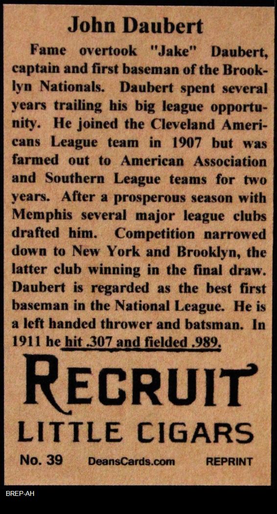 1912 T207 Reprint Jake Daubert 8 - NM/MT