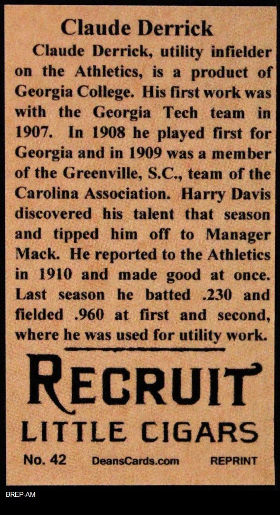 1912 T207 Reprint Claude Derrick
