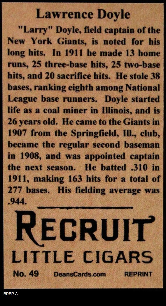 1912 T207 Reprint Larry Doyle 8 - NM/MT