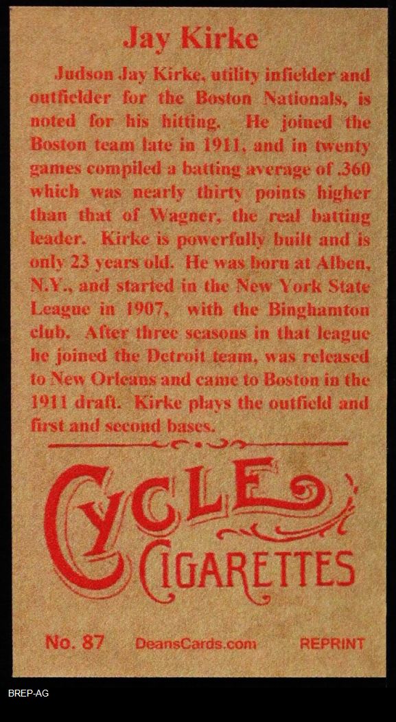 1912 T207 Reprint Jay Kirke 8 - NM/MT