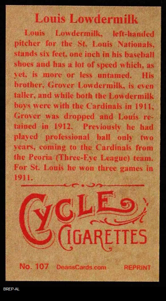 1912 T207 Reprint Louis Lowdermilk 8 - NM/MT