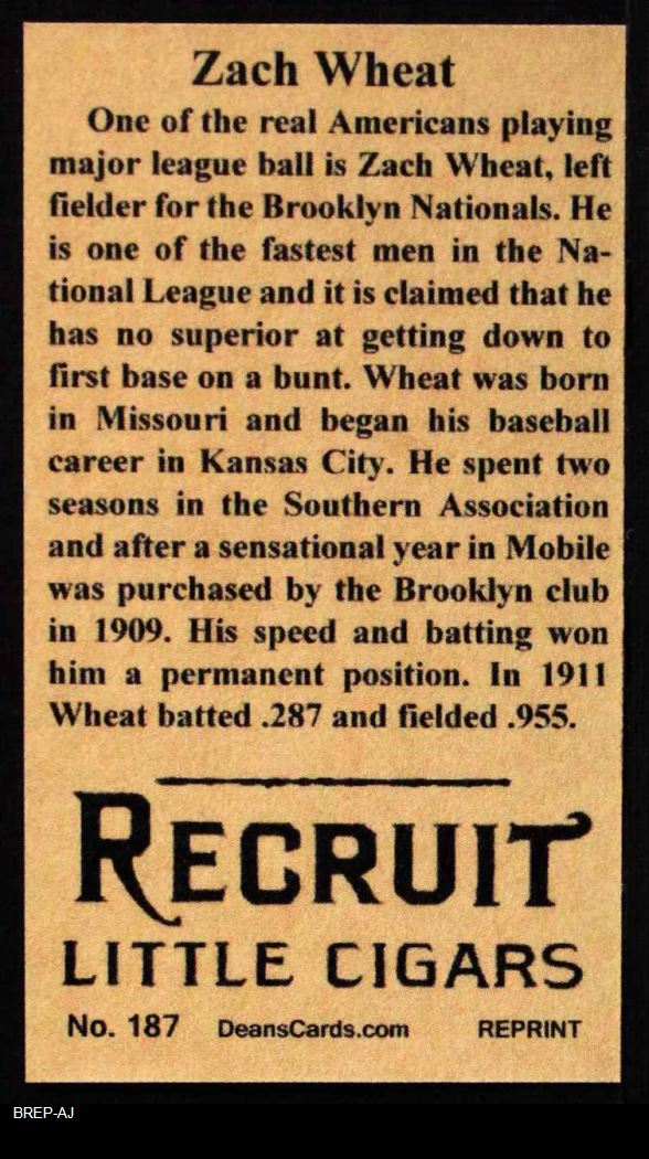 1912 T207 Reprint Zach Wheat 8 - NM/MT
