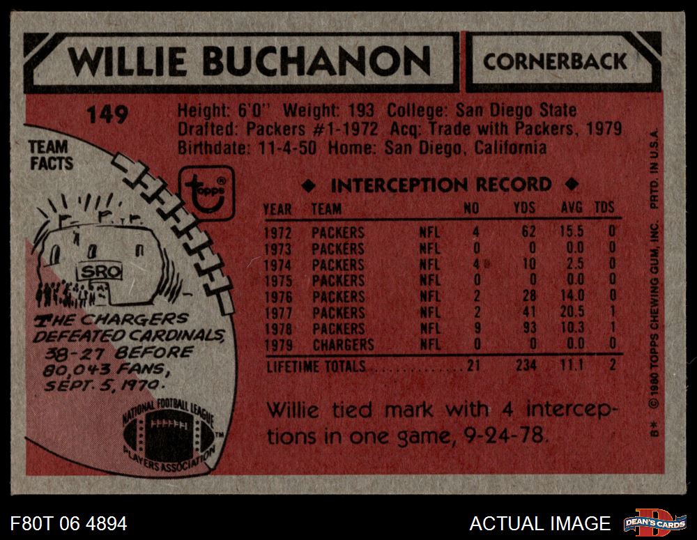 1980 Topps #149 Willie Buchanon 3 - VG