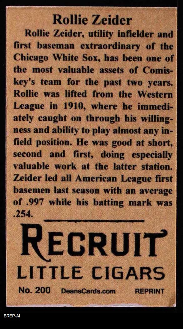 1912 T207 Reprint Rollie Zeider 8 - NM/MT