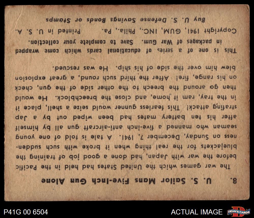 1941 War Gum #8 U.S. Sailor Mans Five-Inch Gun Alone 2 - GOOD