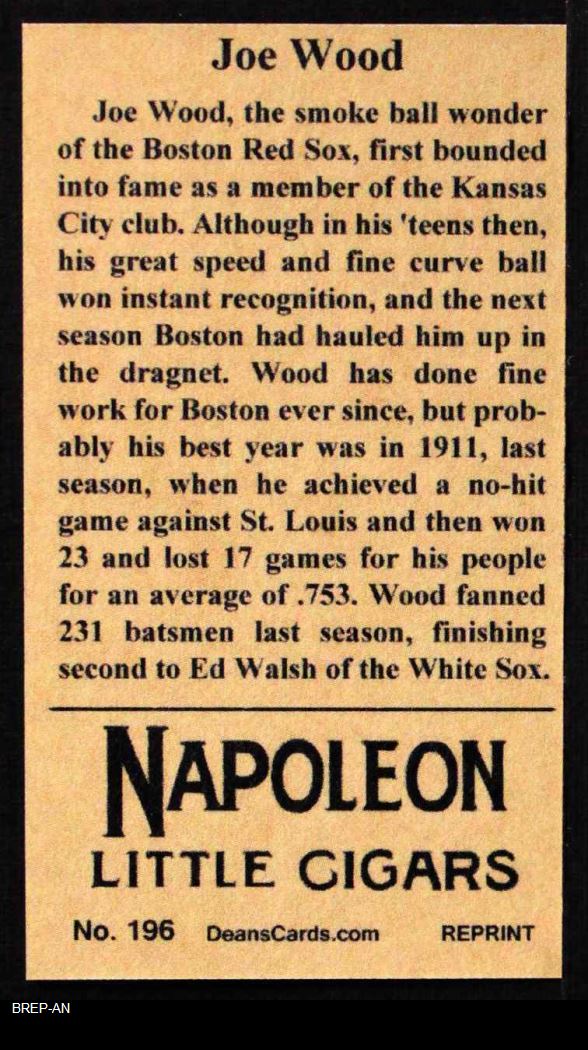 1912 T207 Reprint Smoky Joe Wood