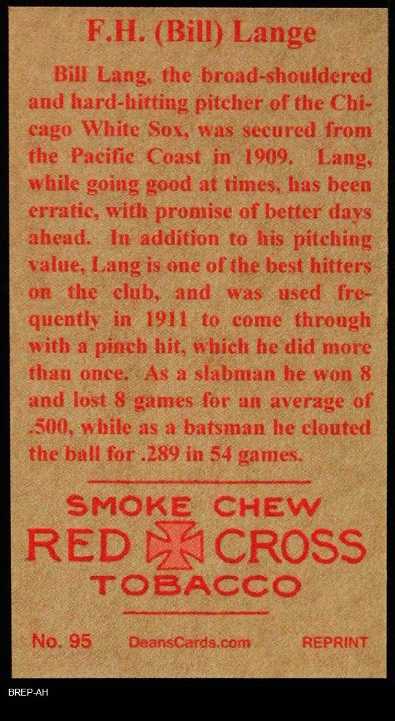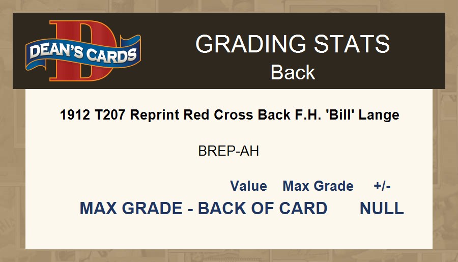 1912 T207 Reprint Red Cross Back F.H. 'Bill' Lange 8 - NM/MT