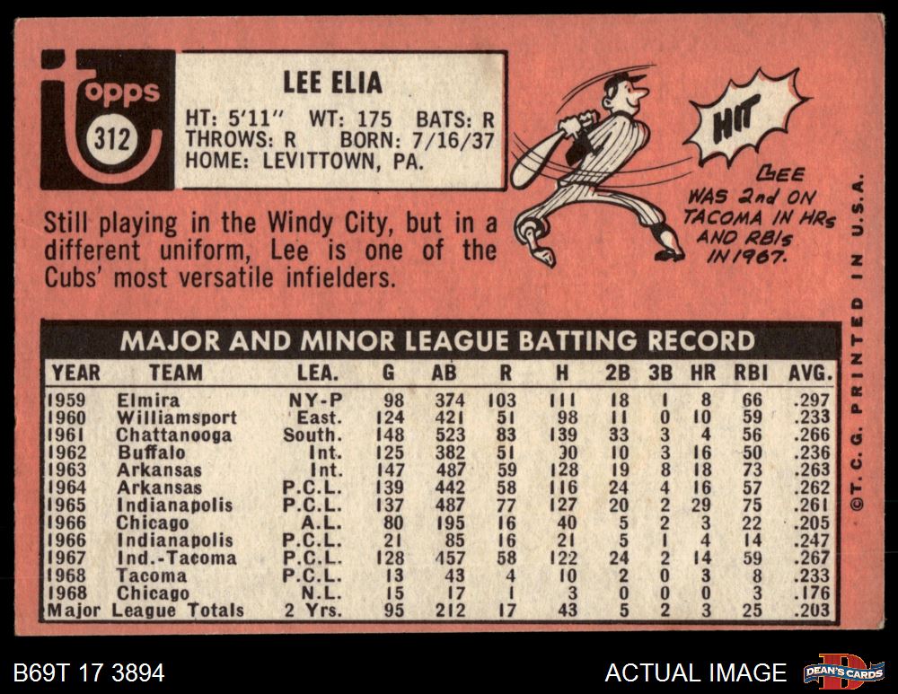 1969 Topps #312 Lee Elia 4 - VG/EX