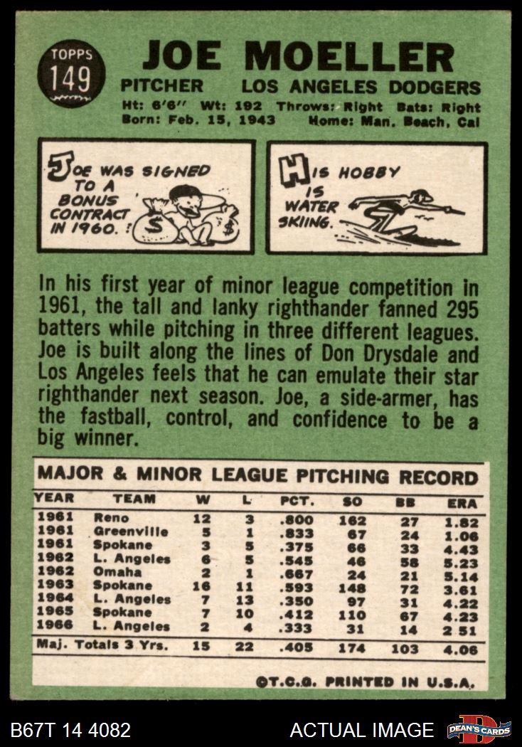 1967 Topps #149 xWHT Joe Moeller 4 - VG/EX