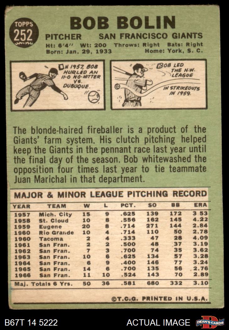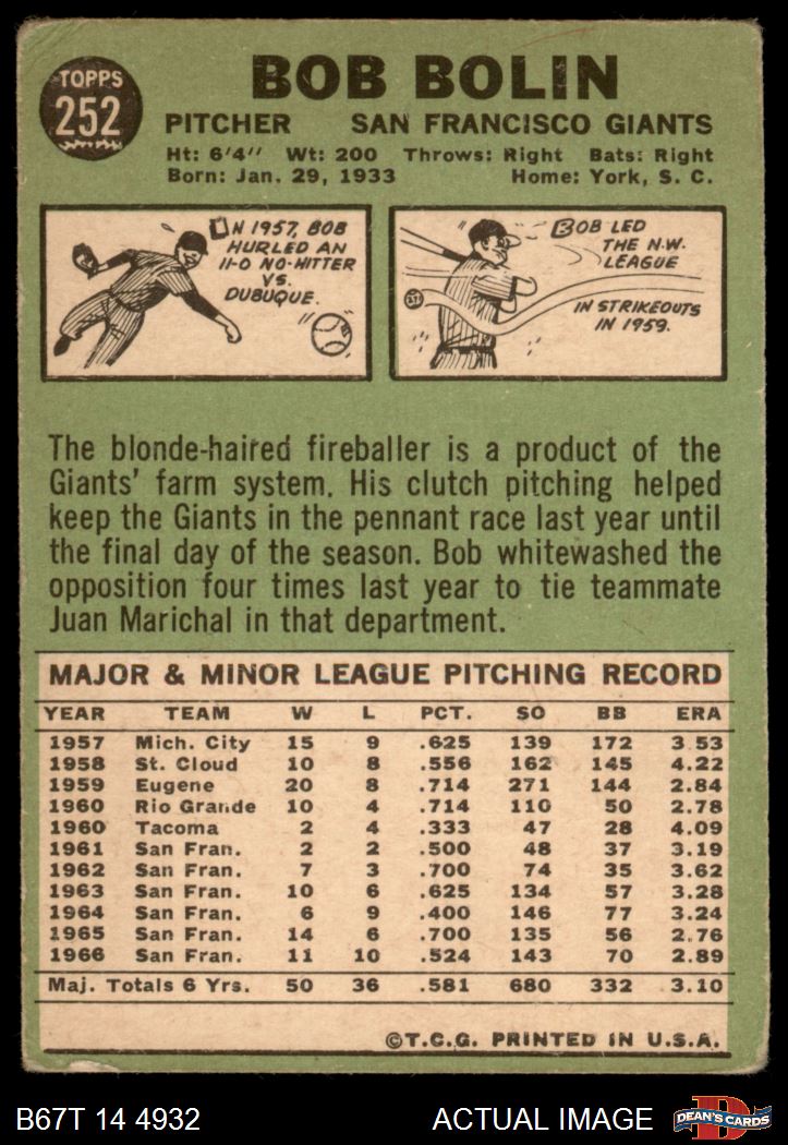 1967 Topps #252 xSTR Bobby Bolin 1.5 - FAIR
