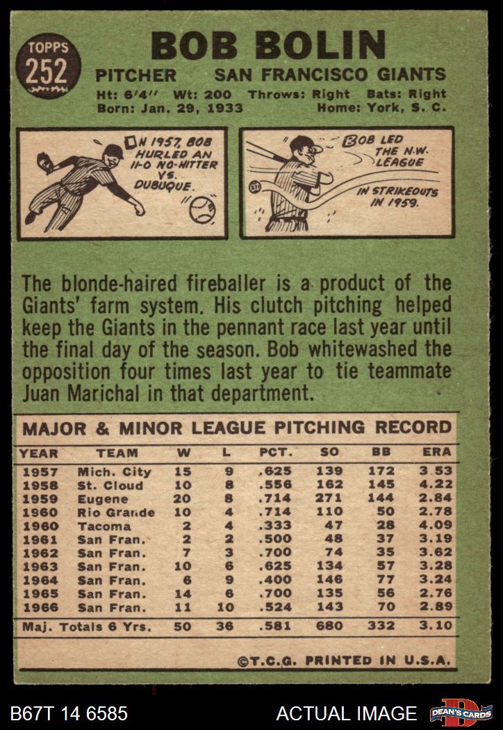 1967 Topps #252 xSTR Bobby Bolin