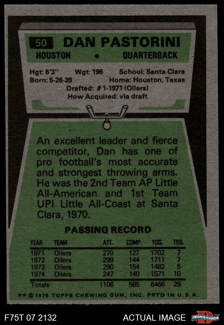 1975 Topps #50 Incorrect Birthdate Dan Pastorini 5 - EX
