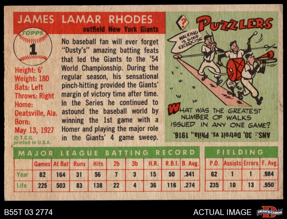 1955 Topps #1 Dusty Rhodes 3.5 - VG+