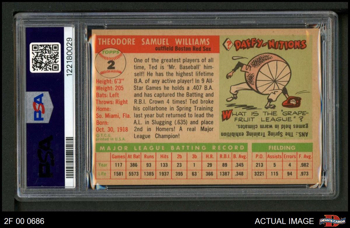 1955 Topps #2 Ted Williams PSA 6 - EX/MT