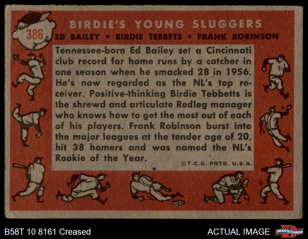 1958 Topps #386 - Frank Robinson / Ed Bailey / Birdie Tebbets Birdie's Young Sluggers 2 - GOOD