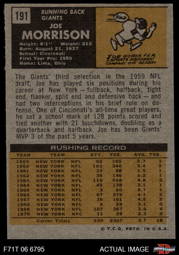 1971 Topps #191 Joe Morrison