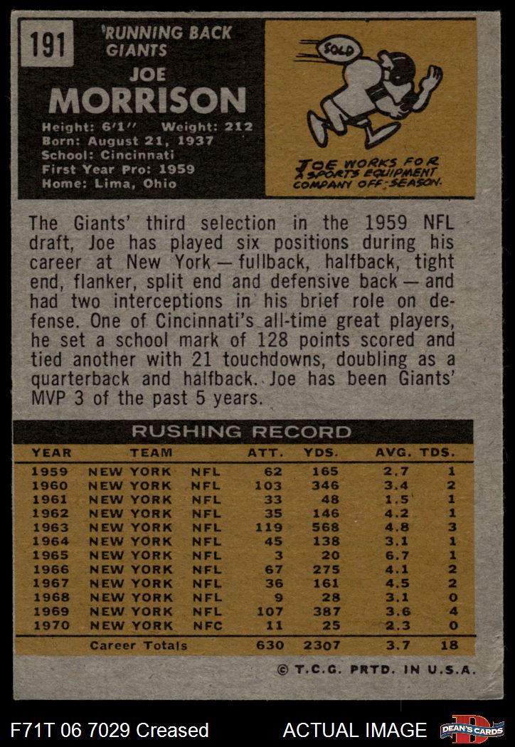 1971 Topps #191 Joe Morrison Front Thumbnail