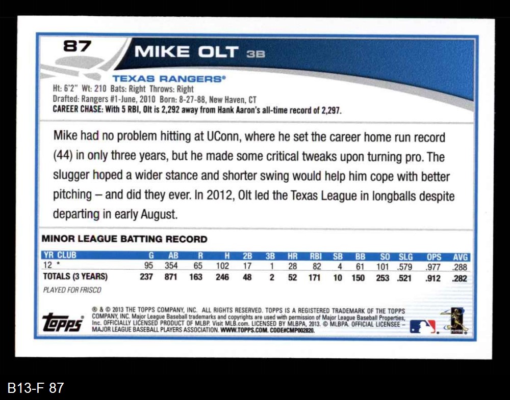 2013 Topps Baseball Cards (2,765 available)2013 Topps Rangers (227 available)