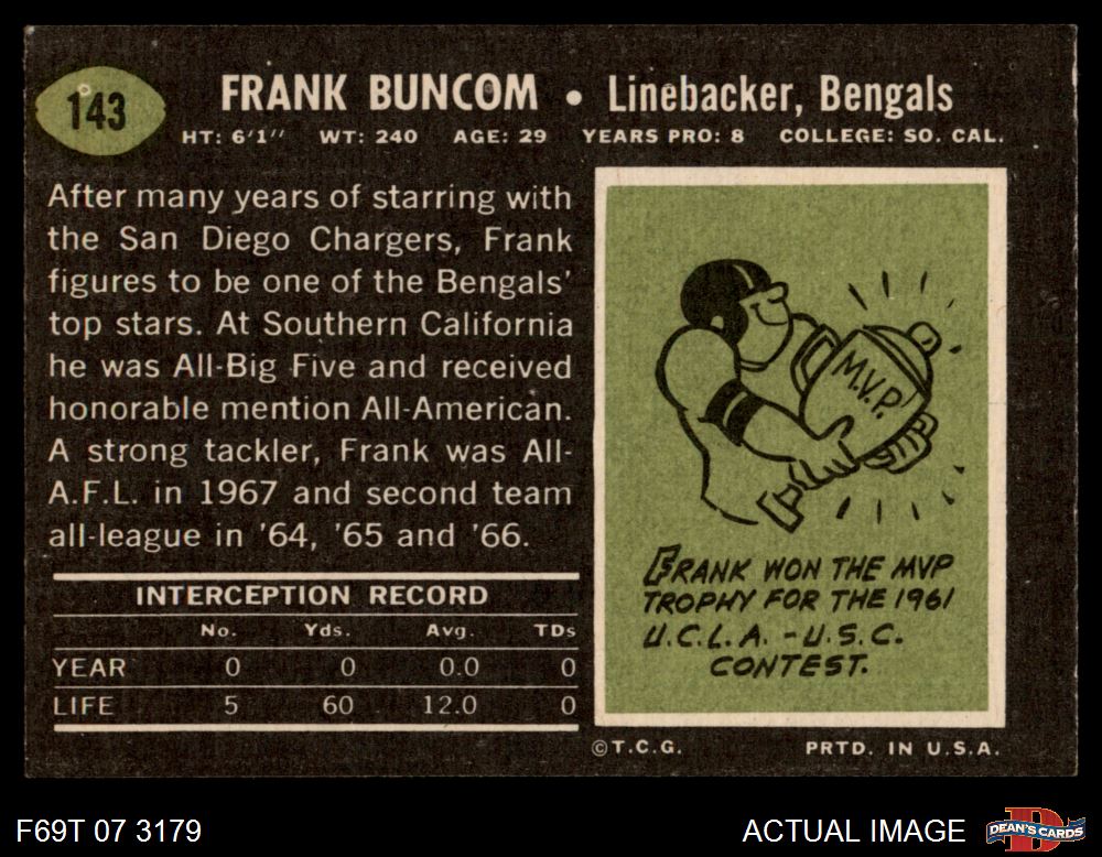 1969 Topps #143 Frank Buncom