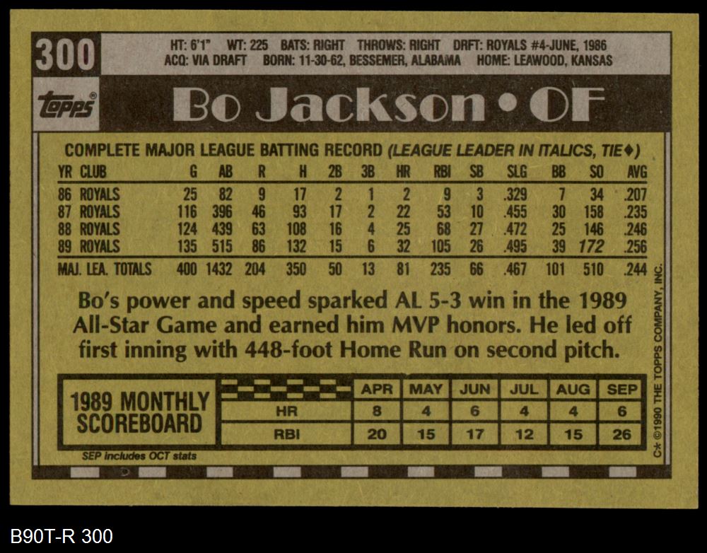 1990 Topps #300 Bo Jackson 8 - NM/MT