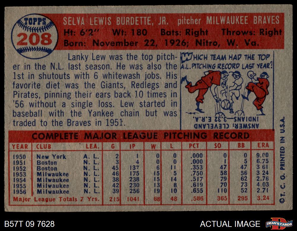 1957 Topps #208 Lew Burdette 4 - VG/EX
