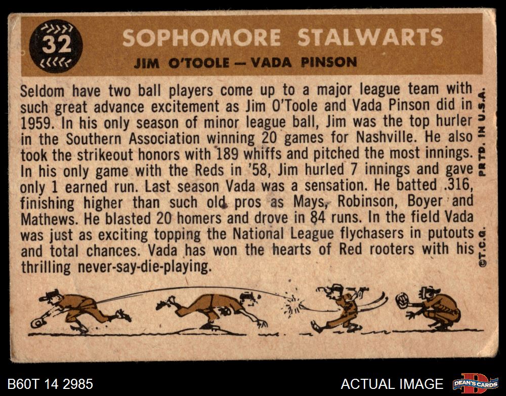 1960 Topps #32 - Jim O'Toole / Vada Pinson Sophomore Stalwarts 1.5 - FAIR