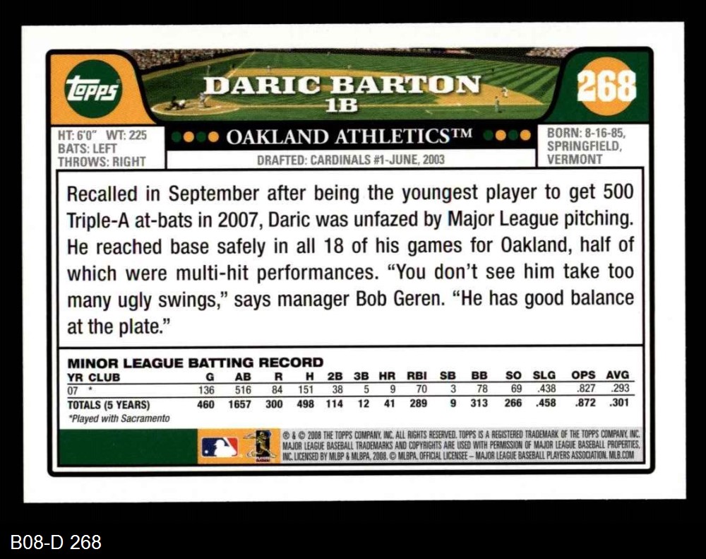 2008 Topps #268 Daric Barton
