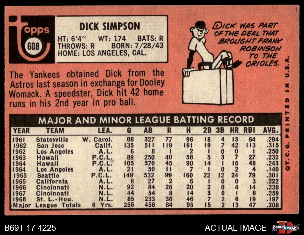 1969 Topps #608 Dick Simpson 4 - VG/EX