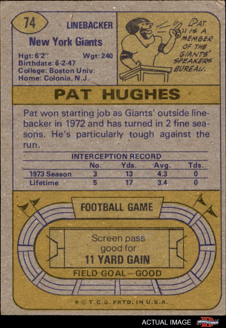 1974 Topps #74 Pat Hughes 4 - VG/EX