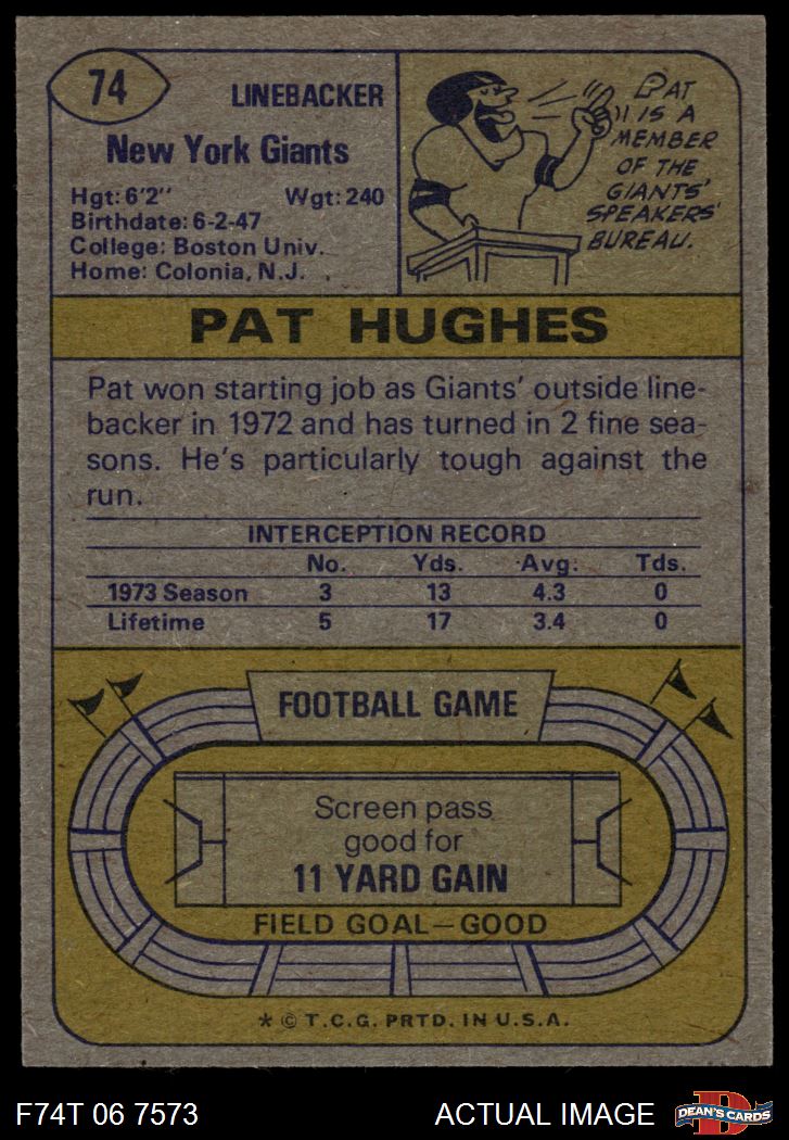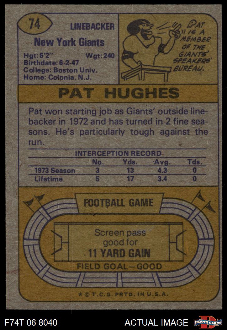 1974 Topps #74 Pat Hughes 6 - EX/MT