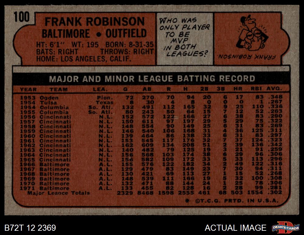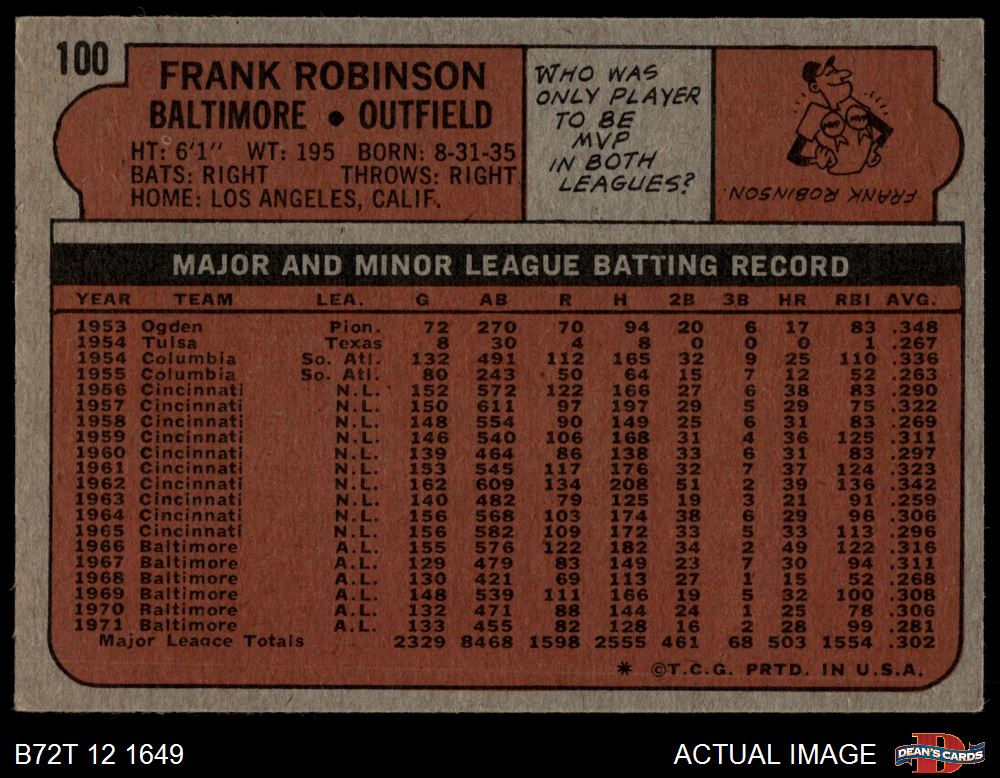 1972 Topps #100 Frank Robinson 4 - VG/EX