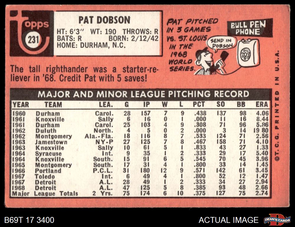 1969 Topps #231 Pat Dobson 2 - GOOD