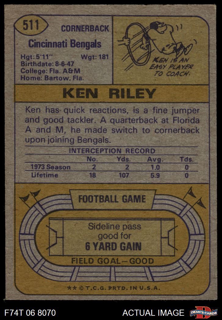 1974 Topps #511 Ken Riley 4 - VG/EX