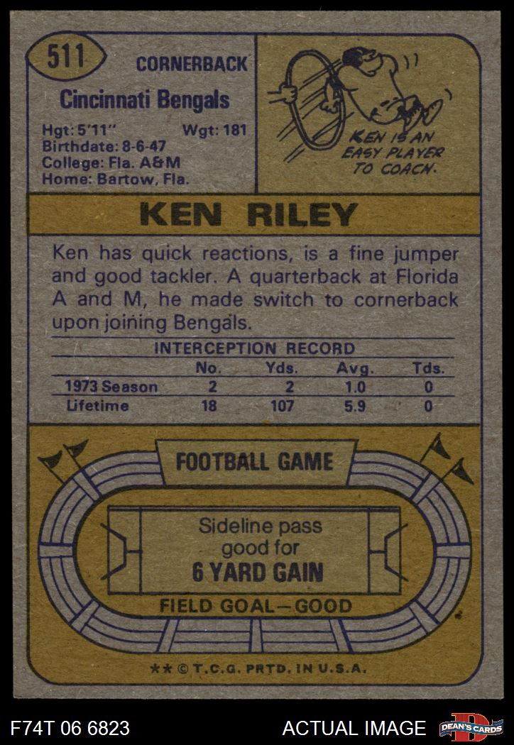 1974 Topps #511 Ken Riley 6 - EX/MT
