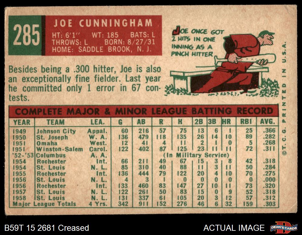 1959 Topps #285 Joe Cunningham 2 - GOOD