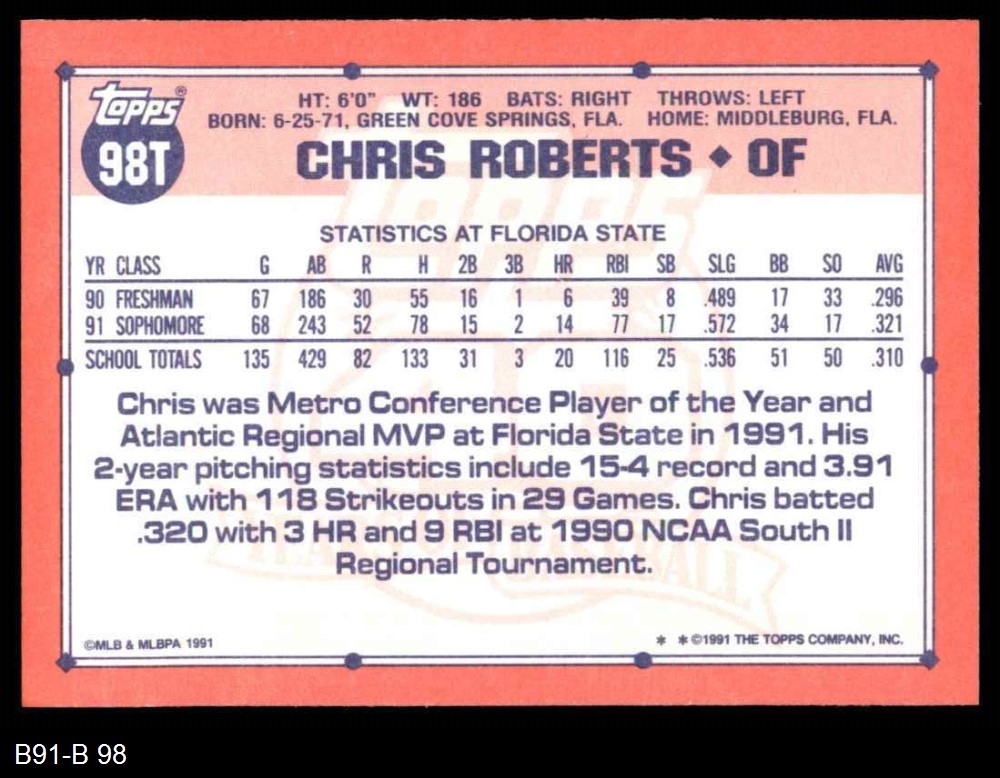 1991 Topps Traded #98 T - Chris Roberts Team USA 8 - NM/MT