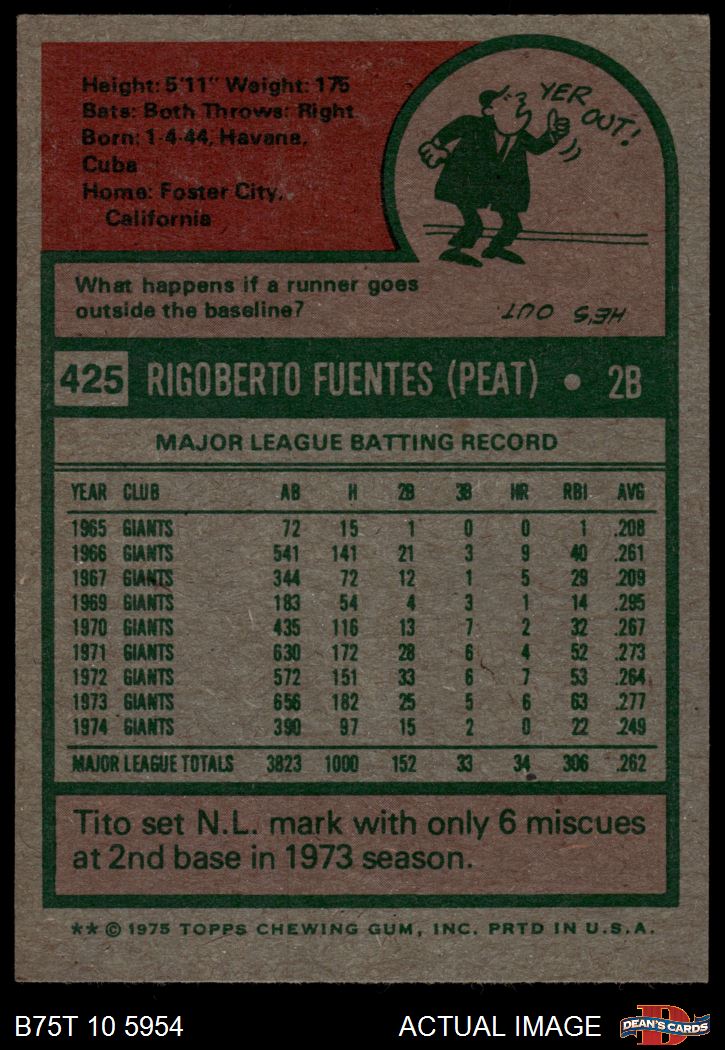 1975 Topps #425 Tito Fuentes 5 - EX