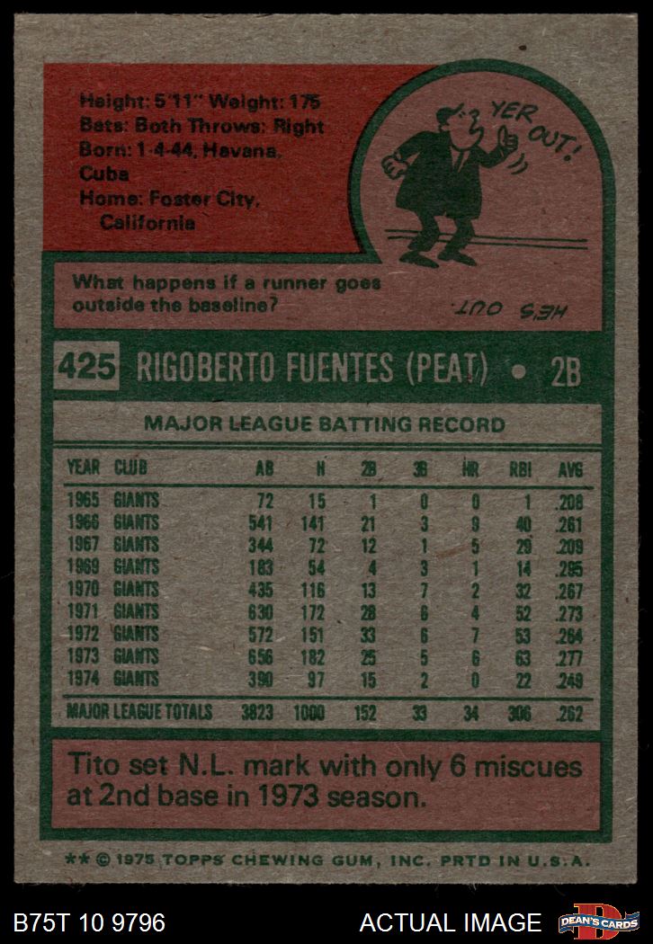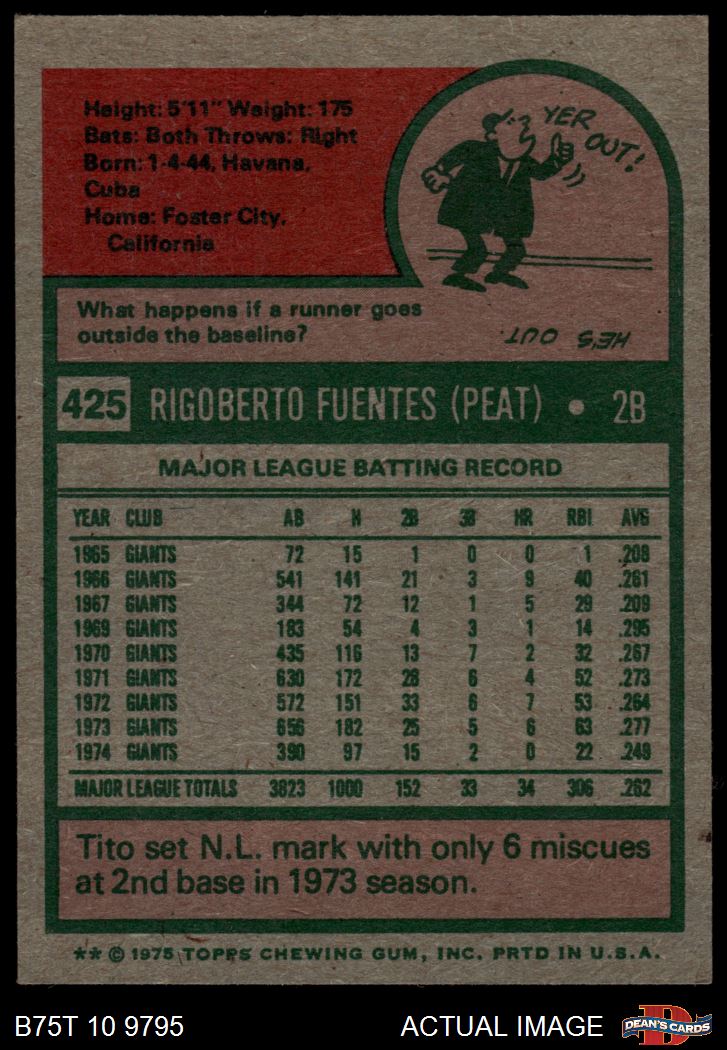 1975 Topps #425 Tito Fuentes 6 - EX/MT