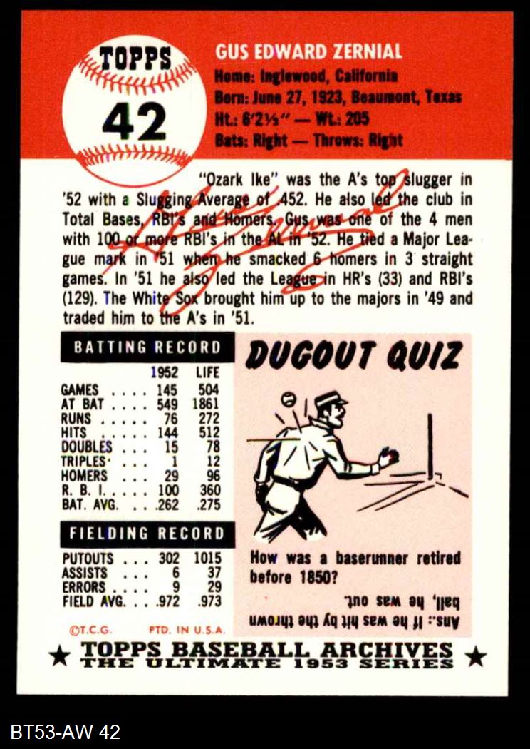 1953 Topps Archives / Reprint (1,398 available)1953 Topps Archives Athletics (121 available)