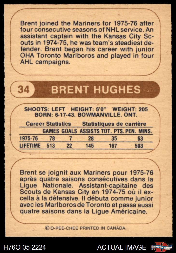 1976 O-Pee-Chee WHA #34 Brent Hughes 7 - NM