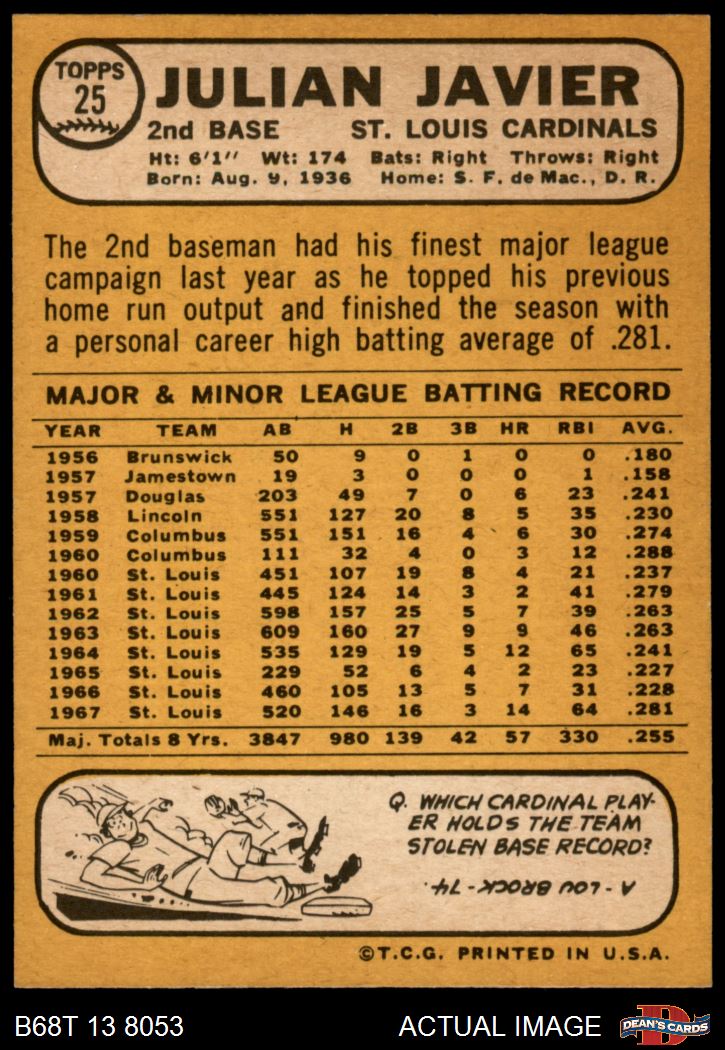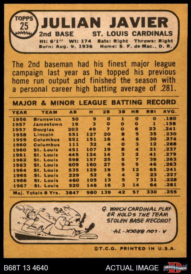 1968 Topps #25 Julian Javier 8 - NM/MT