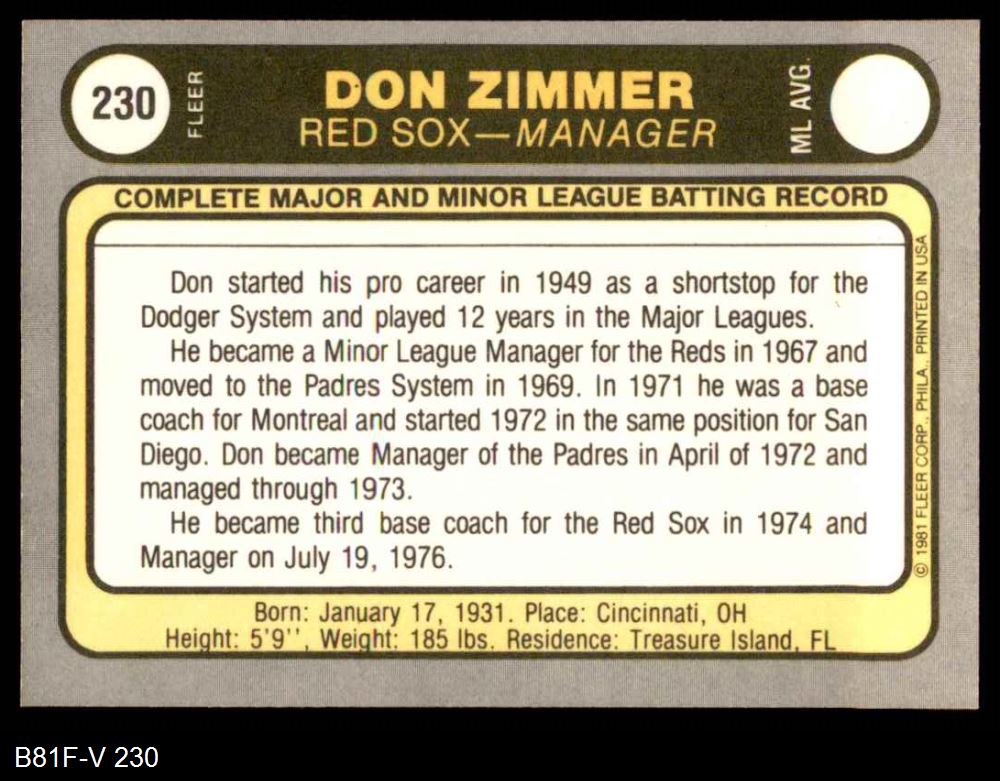 1981 Fleer #230 Don Zimmer 8 - NM/MT