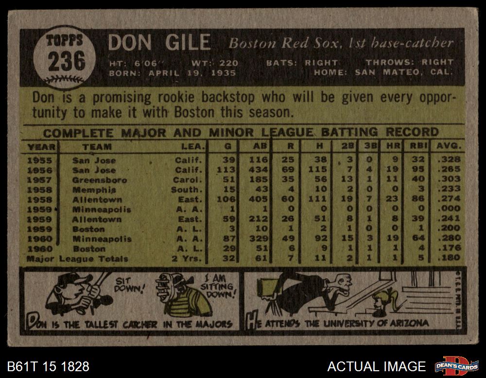 1961 Topps #236 Don Gile 2 - GOOD
