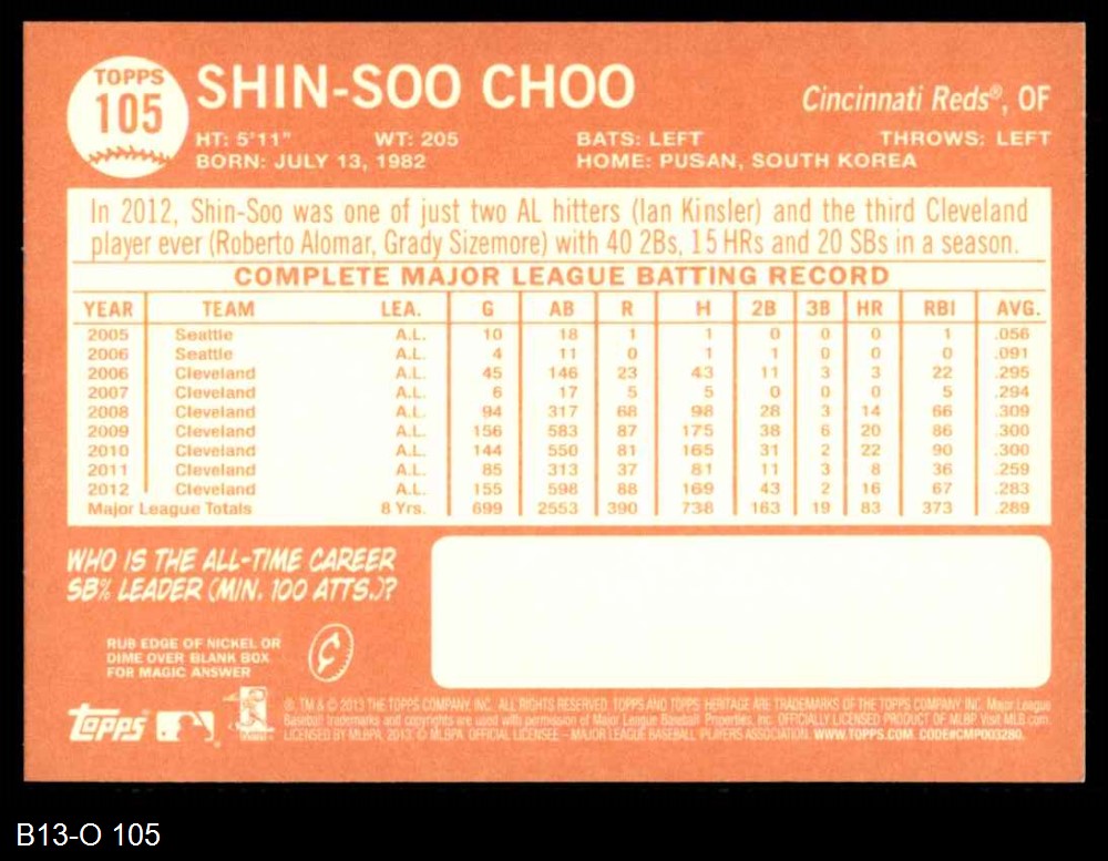 2013 Topps Heritage #105 Shin-Soo Choo 8 - NM/MT