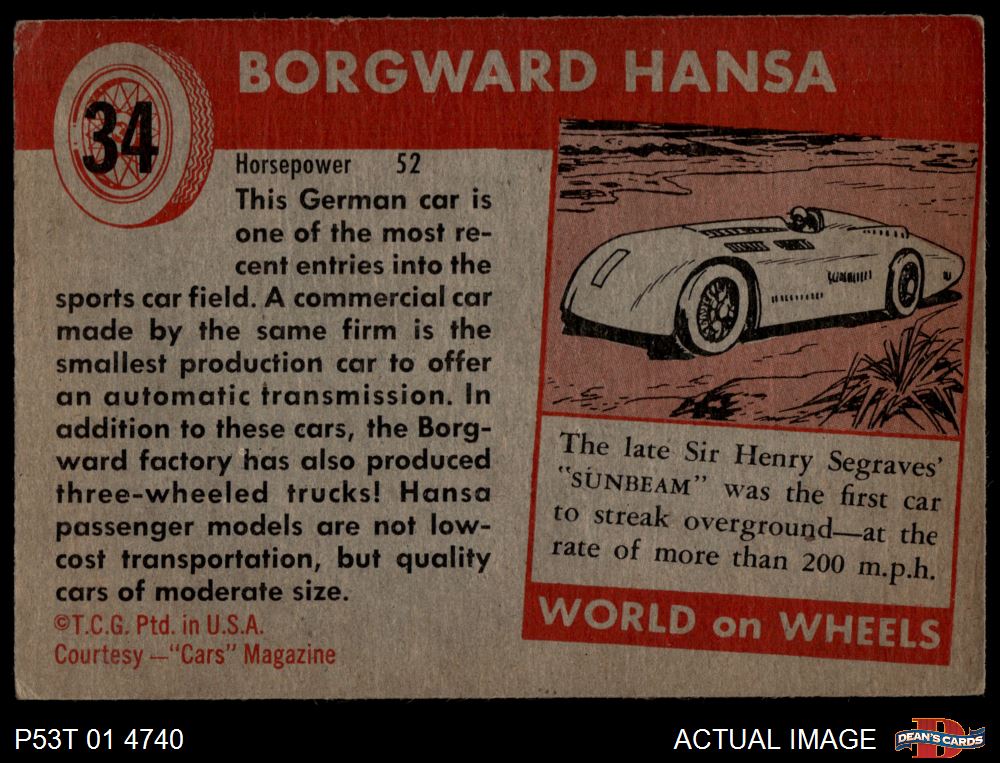 1954 Topps World on Wheels #34 Borgward Hansa 4 - VG/EX