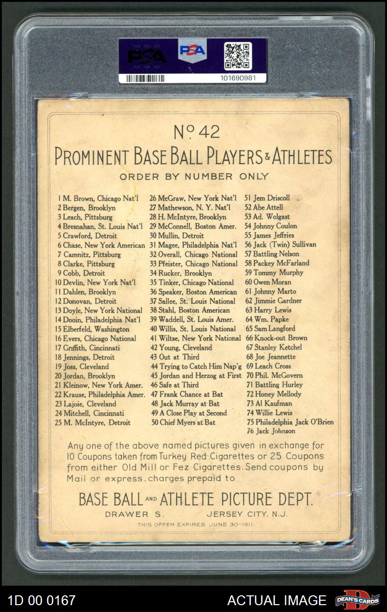 1911 T3 Turkey Red #42 Cy Young PSA 2 - GOOD