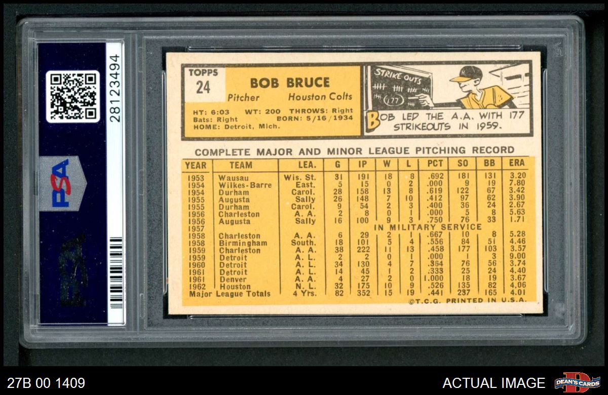 1963 Topps #24 Bob Bruce PSA 6 - EX/MT