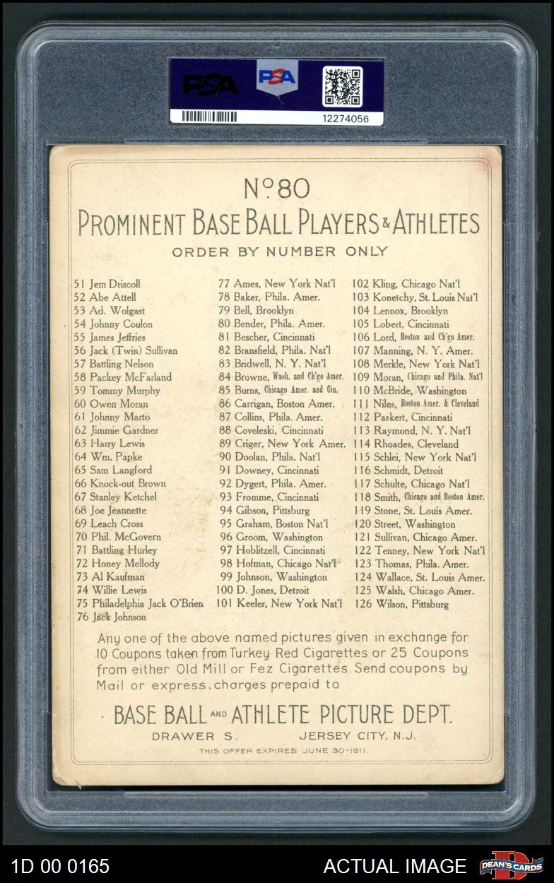 1911 T3 Turkey Red #80 Chief Bender PSA 2 - GOOD